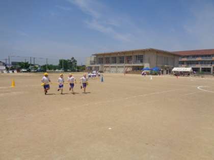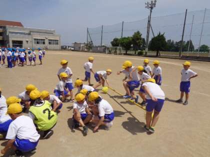 運動会の予行では、実際に台風の目を行いました。