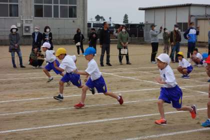 50m走では、力いっぱい走りました。走っている時の表情から真剣さが伝わってきます。