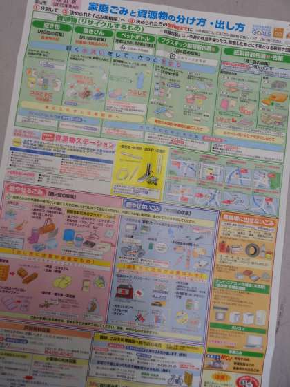 家から持ってきた分別表や収集日カレンダーを見ながら、分別の仕方や収集の曜日を知りました。