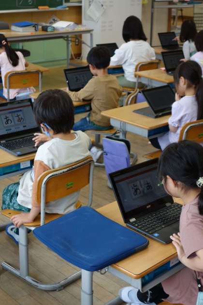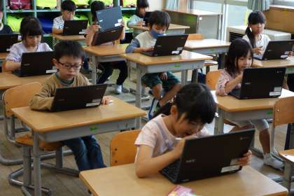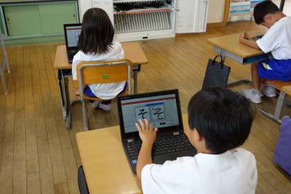 スマイルネクストドリルでひらがなの復習です。子供たちが苦手としているひらがなをピックアップして、練習しました。花丸がもらえたと嬉しそうな子供たちでした。