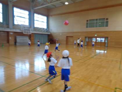 今日の体育は、ボールを使って思い切り身体を動かしました。キャッチボールをしたり、的を狙って投げたりする活動を通して、的に向かって真っ直ぐに投げるためには腕の振りや、ボールを持っていない手の向きが大切だということを学んでいました。