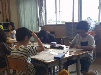 自分の足で歩いて気付いたことや、地区の方に教えて頂いたことをまとめようと、グループで相談して活動開始。