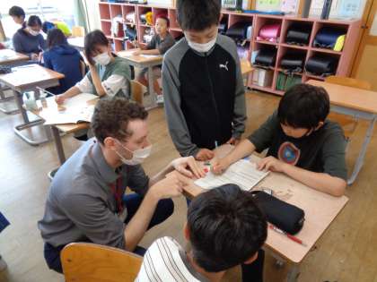 自分の宝物をクイズで紹介するために、ワークシートを仕上げました。分からない英語の表現は、ALTに質問するなど意欲的に取り組みました。
