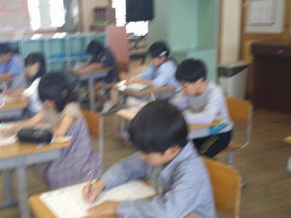 今までの練習の成果を発揮して、はねやはらいに気を付けて、丁寧な字で取り組みました。みんな1週間前のプレテストよりも力を伸ばすことができました。