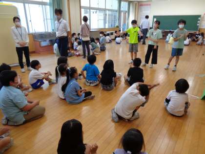 太鼓げんキッズの顔合わせを行いました。チームリーダー、パートリーダーが意気込みを伝え、「みんなでがんばっていきましょう」と呼びかけていました。