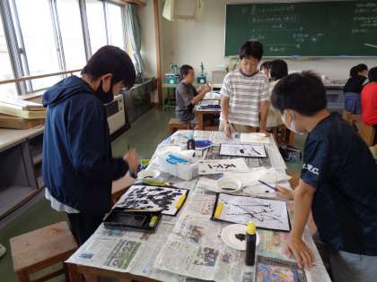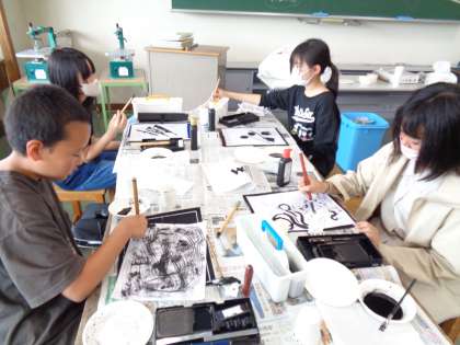 水の量や筆を動かすスピードを変えて、「にじみ」「かすれ」「ぼかし」等、いろいろな表現を楽しみました。