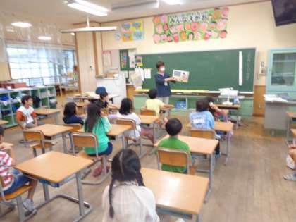 今日は『どろぼうがっこう』というお話を読んでいただきました。予想外の展開に、子供たちは常にどきどきしながら物語に聞き入っていました。