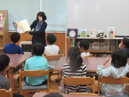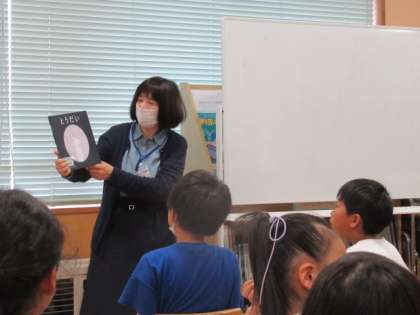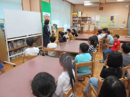 今日は1組、2組それぞれ図書室でお話を紹介してもらいました。
