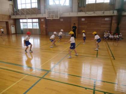 走り逃げる側と捕まえる側に分かれておこないました。