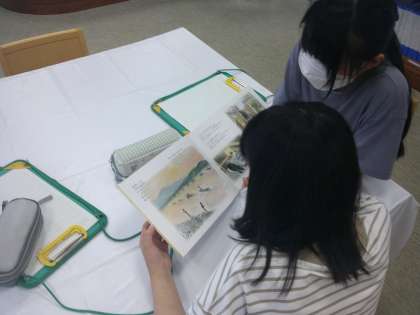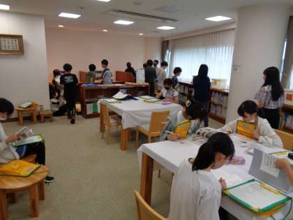 資料室では、静かに本を読んだり、映像を見たりして学びました。