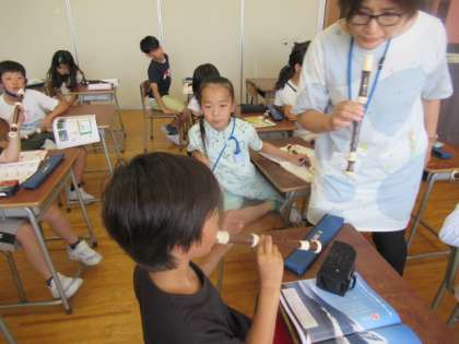 まだ、ふくことができる音は少ないですが、先生に合わせてリズムよくふきました。