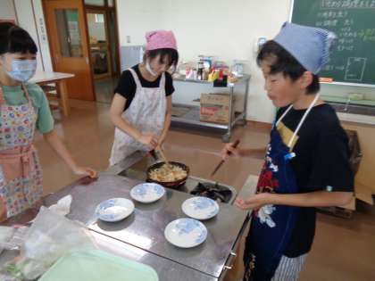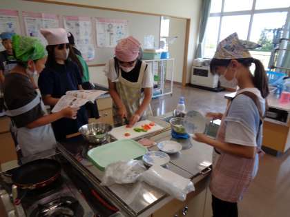 家庭科で「いろどりいため」を作りました。グループのメンバーと協力しながら、切り方を工夫したり、火加減を調節したりして、どの班もおいしく調理することができました。