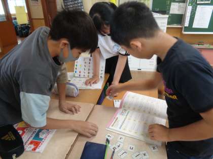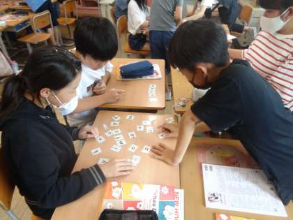 今日は、アルファベットの小文字を学習しました。カードを班の仲間と協力して並べ替えました。