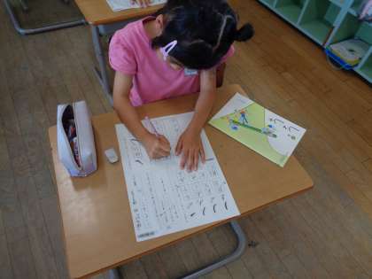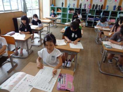 今日の書写の学習では、はらいの正しい書き方を身に付けました。子供たちは、様々なはらいの種類があることに気付き、「もっと書いてみたい」と学習に対する意欲を高めながら取り組んでいました。