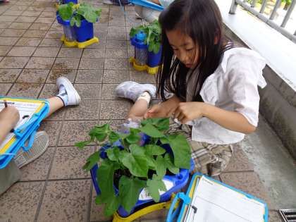 毎日の水やりのおかげもあり、あさがおもどんどん大きく成長してきています。本葉を直接触ってみたり、横から観察してみたりして、あさがおの本葉がどんな形をしているかを観察カードに書きました。