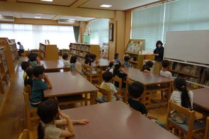 今日も司書の先生に読み聞かせをしていただきました。読み聞かせの後に、お話を覚えているかのクイズがありましたが、きちんと答えることができました。