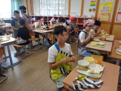 今日の給食では、冷凍みかんが出ました。カメラを向けると冷たくないと言いながら食べていました。カメラをしまうと、「冷た〜」と顔をしかめていました。