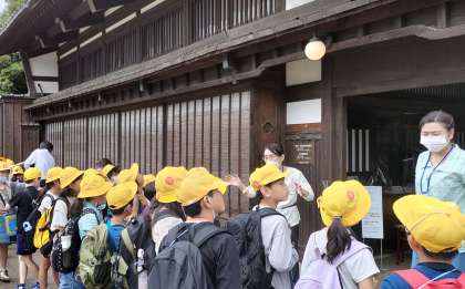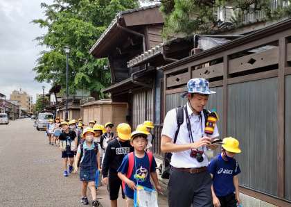 森家等、古い建物が建ち並びます。まちの方々にもたくさん声を掛けていただきました。しっかり挨拶できる3年生です。