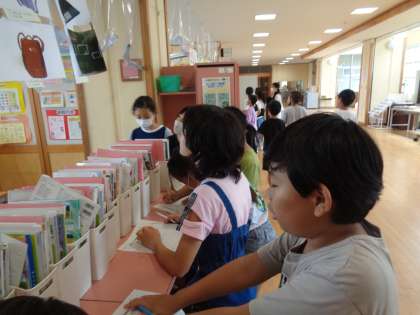 図画工作科では、鑑賞を行いました。友達の作品を見て、鑑賞カードに目一杯書いていました。友達の作品のいいところを探そうとキラキラした目で見つめていました。