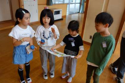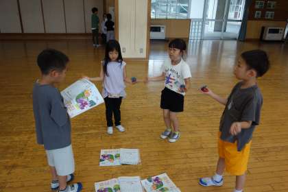 歌とカスタネットに分かれて、グループ練習をしている様子です。自分たちの力で学習を進めることも、少しずつ練習していきましょう。