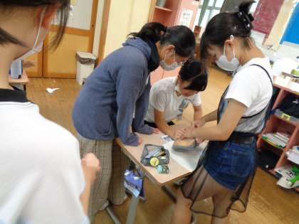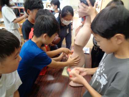 模型を使って、臓器一つ一つのつくりを確認したり、体内で臓器がどのように配置されているか確かめたりしました。体のつくりについて理解を深めることができました。