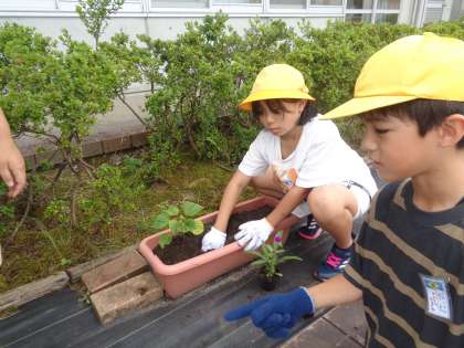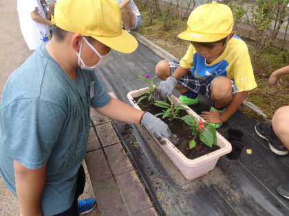 学校のために、花の苗植えを行いました。一人一人がまごころをもって、丁寧に植えることができました。立派に育つといいですね。