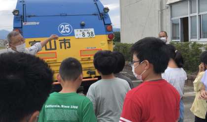 富山市環境センターの方からゴミの分別の仕方やごみ収集車のことなどについて話を聞くことができました。