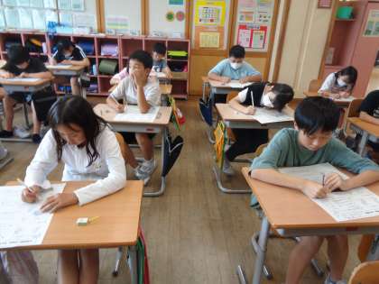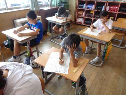 明日から家庭学習チャレンジ週間が始まります。今日は、1回目の宮野っ子検定を行いました。頭をかかえながら、問題に取り組んでいました。