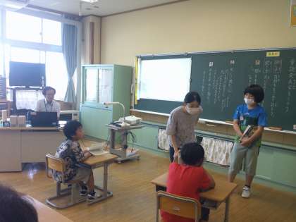 のぞみ級では、国語科「音読発表会をしよう」、あおぞら級では、算数科「どちらがおおい?」「たすのかな ひくのかな」の学習を行いました。保護者の方々が見守るなか、日頃の学習の成果を発揮して取り組んでいました。