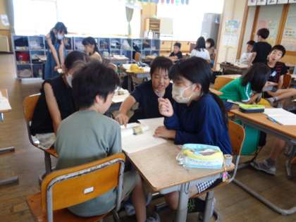 『一つの花』の第2場面に「それからまもなく、あまりじょうぶでないゆみ子のお父さんも、戦争に行かなければならない日がやって来ました。」という文があります。この表現から、当時の世の中がどんな様子だったのかを考え、グループで話し合いました。