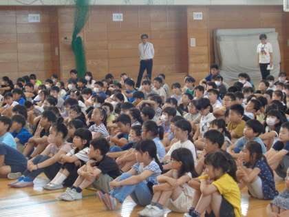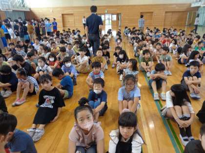 今日は、プール開きがありました。静かに人の話を聞き、プールに入るときに大切なことや、準備することについて学んでいました。できるようになりたい泳ぎを真剣に考えていました。