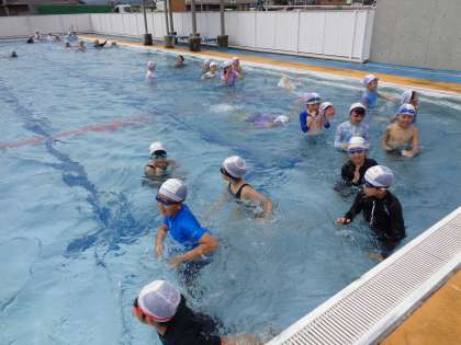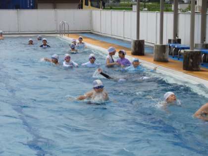 朝のプール開きの式の後、さっそく2限に今年度初の水泳学習を行いました。