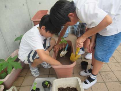 今日の昼休みになかなか育たなかった植物の植え替えをおこないました。