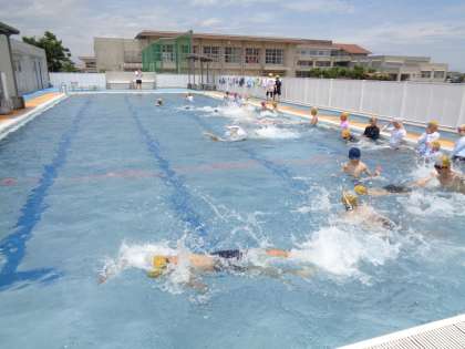 水泳学習が始まりました。今日もとても暑い日だったので、気持ちよさそうでした。ルールを守って、楽しく水泳学習を進めていきます。