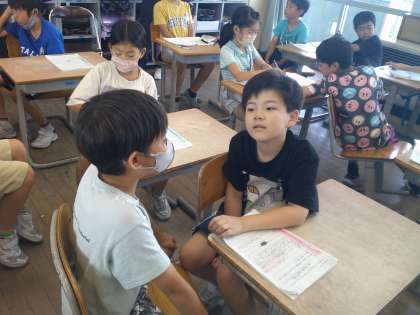 今日の学校訪問研修会では、1組は、社会科「いんさつ工場のひけつをさぐろう」 2組は、国語科「まいごのかぎ」の学習をしました。ペアやグループで、自分の考えを進んで話す姿がみれられました。