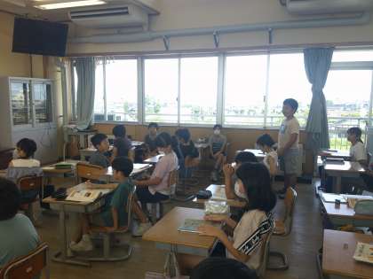 今日の学校訪問研修会では、1組も2組も、算数科「小数のしくみを調べよう」の学習をしていました。これまで習ったことを思い返しながら、課題に対して進んで考えたり自分の意見を述べたりする姿が見られました。