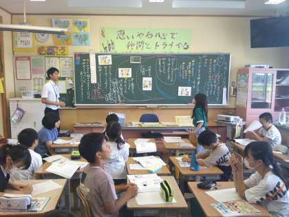 今日の学校訪問研修会では、1組は、道徳「セルフジャッジ」 2組は、道徳「ドッジボールを百倍楽しくする方法」の学習をしていました。教材文と自分たちの生活をつなげながら、考えたことを仲間に進んで伝えていました。