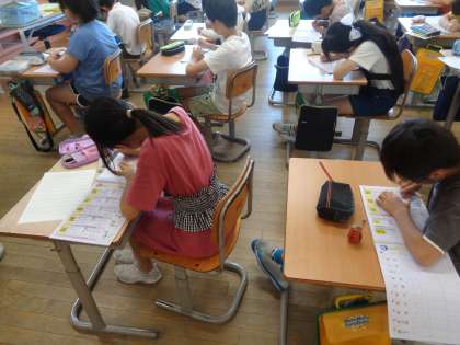 昨日の写真となりますが、漢字練習の様子です。書く姿勢がいちだんとよくなっています。正しい姿勢で集中して取り組むことができました。