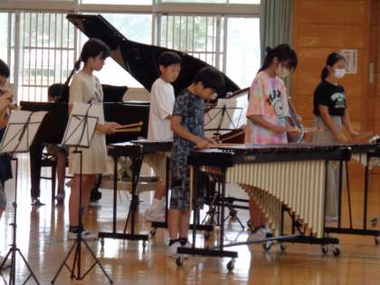 音楽の授業で練習を積み重ねた「さんぽ」を全校のみんなに聴いてもらいたいという思いから、昼休みにコンサートを開きました。体育館には、たくさんの児童、先生方が集まりました。堂々と演奏し、大きな拍手をもらった6年生の子供たちは、とてもうれしそうな様子でした。