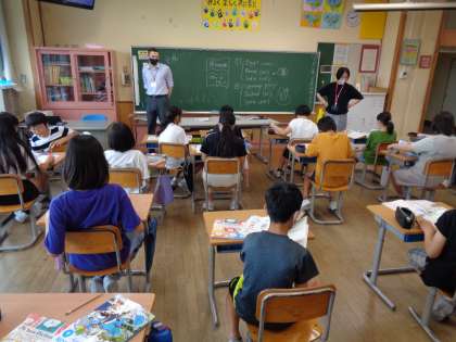 自分の行ってみたい国について考えました。「You can see 〜.」「You can eat 〜.」の表現を使って、見たいものや食べたいものを書きました。