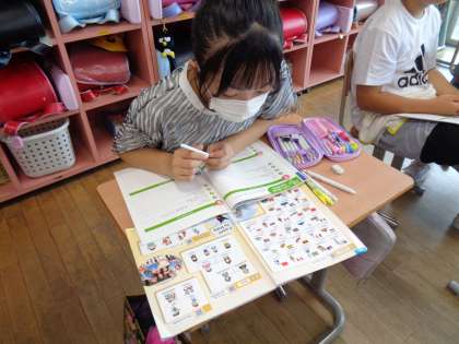 自分の行ってみたい国について考えました。「You can see 〜.」「You can eat 〜.」の表現を使って、見たいものや食べたいものを書きました。