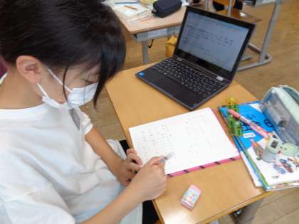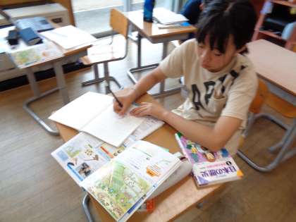弥生時代の住まいや衣服、むらの様子等、関心のある事柄について調べ学習に取り組みました。動画を見たり、資料集を読んだりと、それぞれが学習方法を選択しながら進めています。