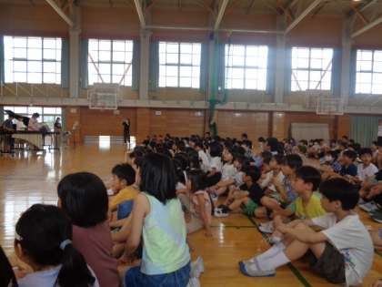 6年生のお兄さんお姉さんが演奏する姿を見つめた子供たち。