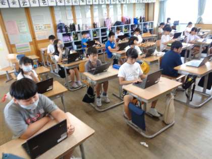 クロームブックを使って、環境をよりよくするための家庭での取り組みを紹介し合いました。