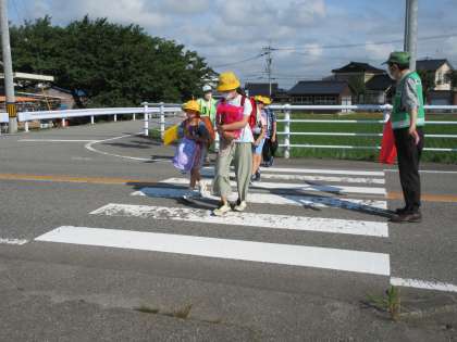 押しボタンの信号では、毎日地域の方が、見守り、車が渋滞しないよう、押しボタンを押すタイミングも教えてくださっています。