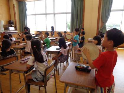 音楽の時間では、タンバリンを使って演奏したり、リズムづくりをしたりしました。歌・楽器演奏・リズムづくりとたくさんの活動を行ってきましたが、どの活動にも一生懸命取り組む1年生です。