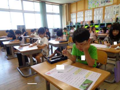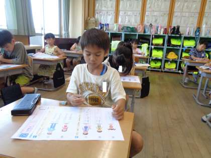 テストの様子です。テストの内容もだんだん難しくなってきていますが、わからないと思っても最後まで諦めずに取り組んでいます。