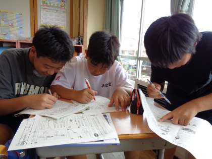 集中してプリント学習に取り組みました。苦手な教科にも一生懸命向き合っています。
