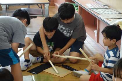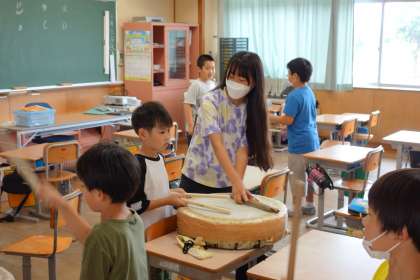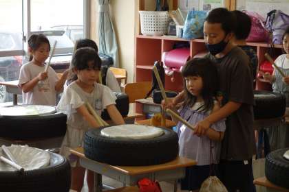 今日は、2回目の和太鼓げんキッズ活動でした。実際に、ばちを使った練習に取り組みました。