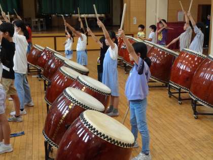 「まごころ」の練習が今年も始まりました。パートの仲間全員で合わせたり、上学年として下学年に教えたり、指導の先生の話を聴いて太鼓を叩いたりと、一生懸命活動しました。